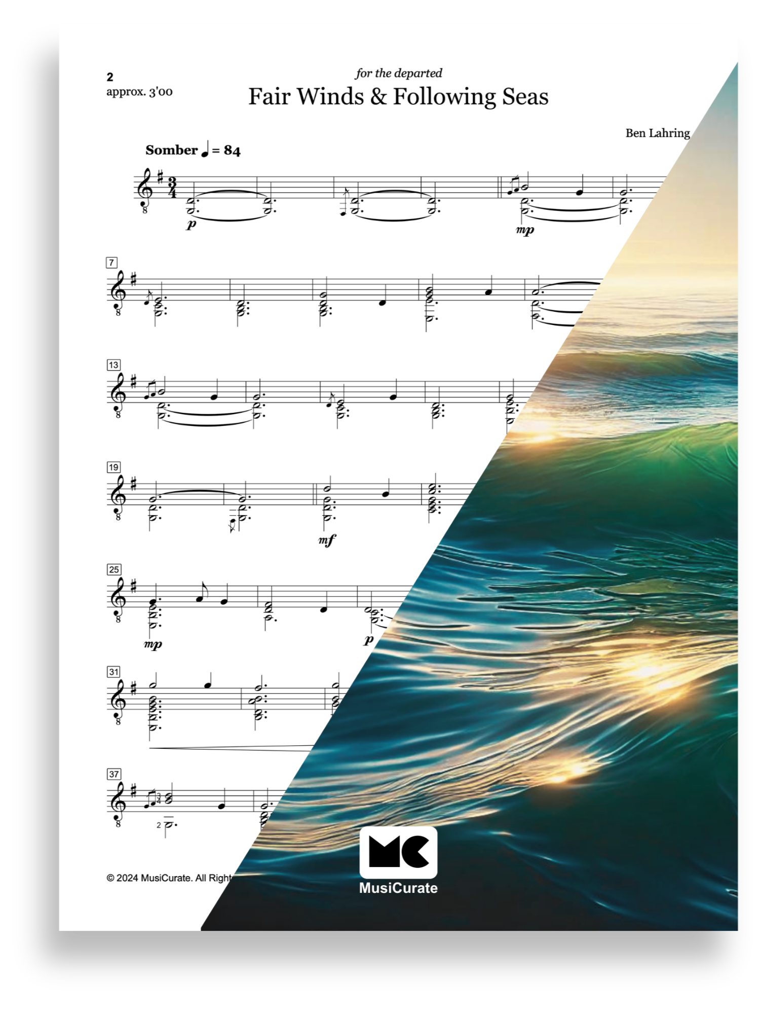 “Fair Winds and Following Seas” is a solemn farewell that acknowledges loss while anticipating newness. It was composed after the passing of a loved one, in the midst of the global coronavirus pandemic, and is dedicated to "the departed".