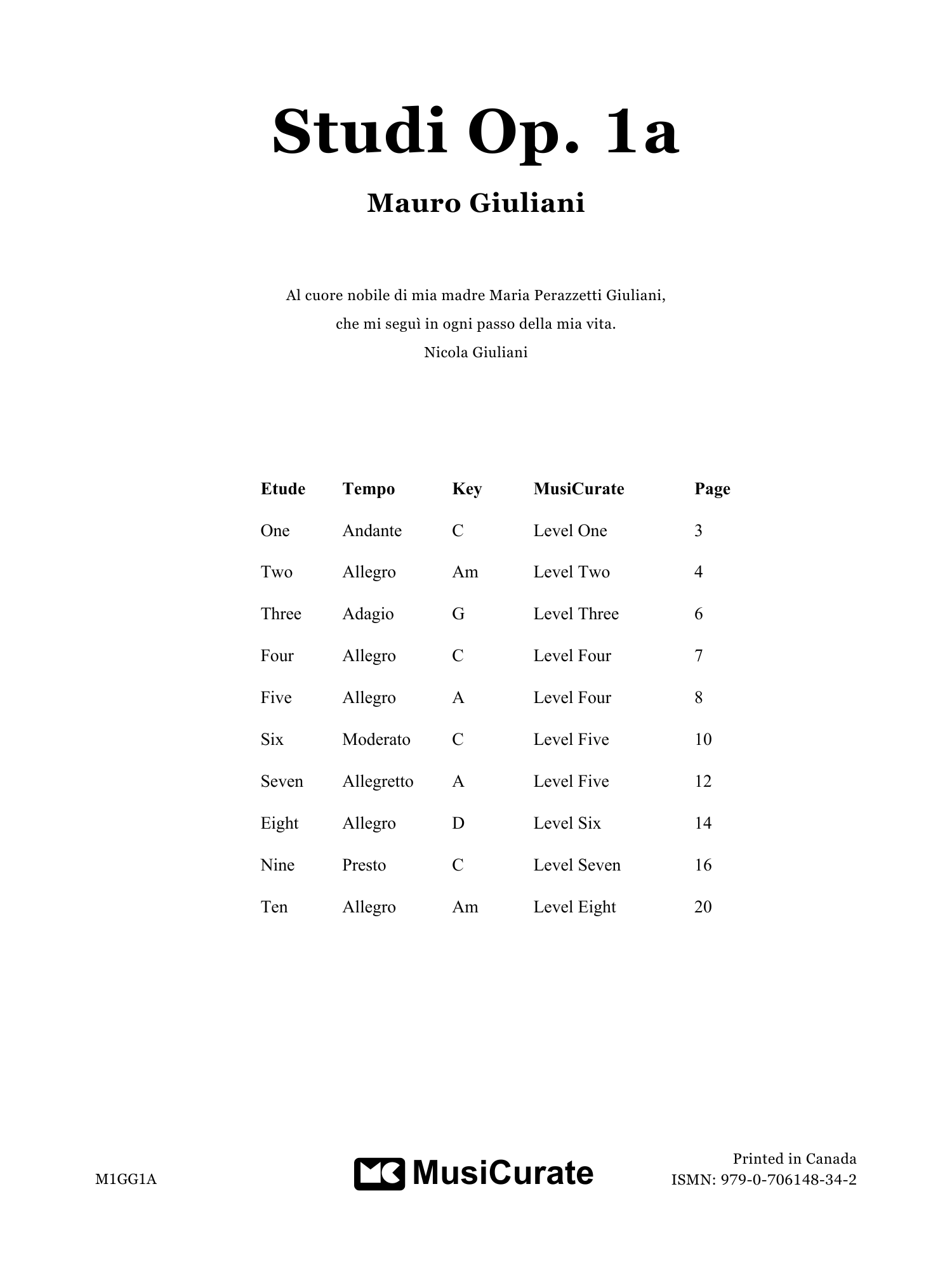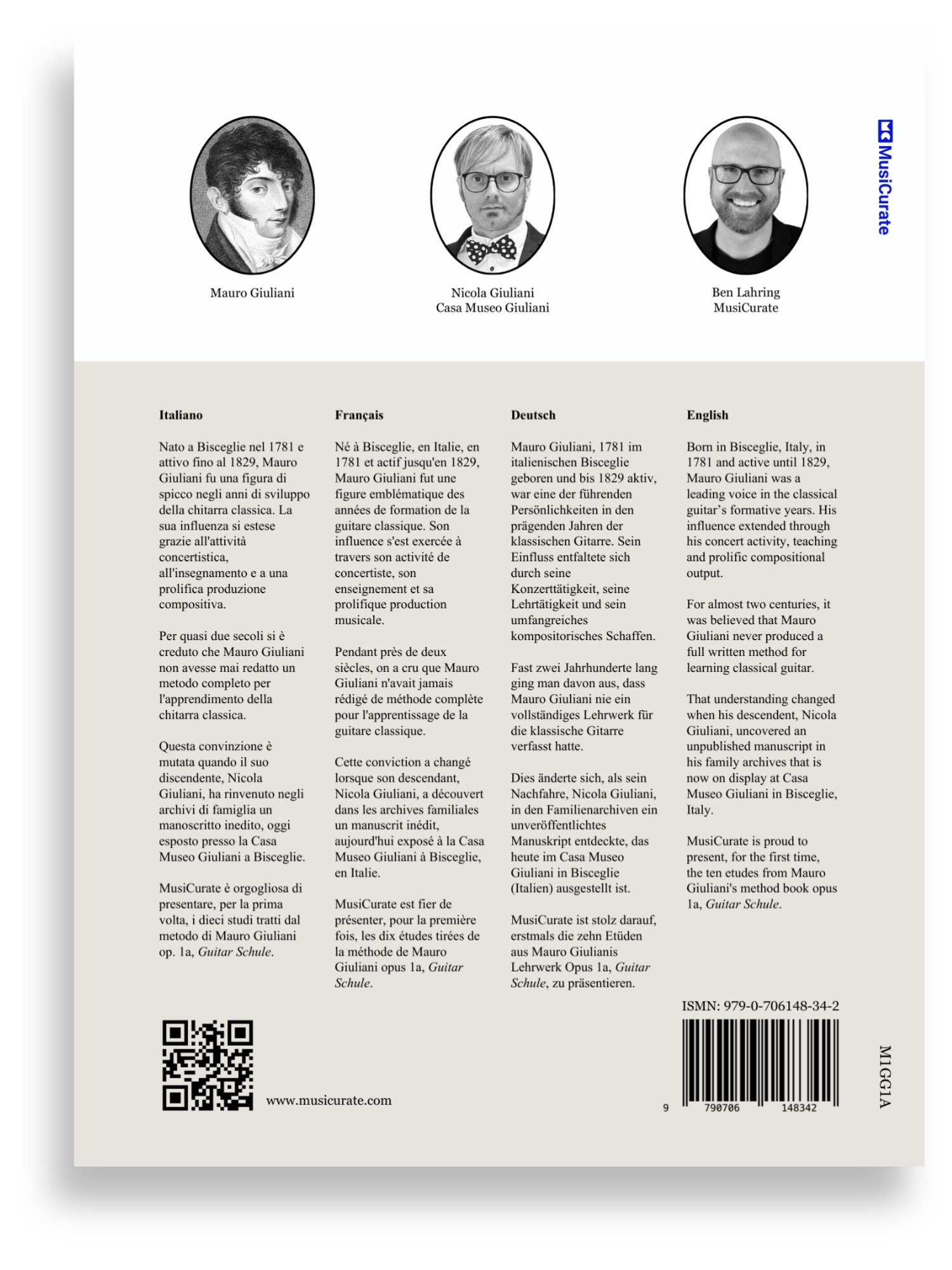 MusiCurate is proud to present, for the first time, the ten etudes from Mauro Giuliani's method book opus 1a, Guitar Schule.